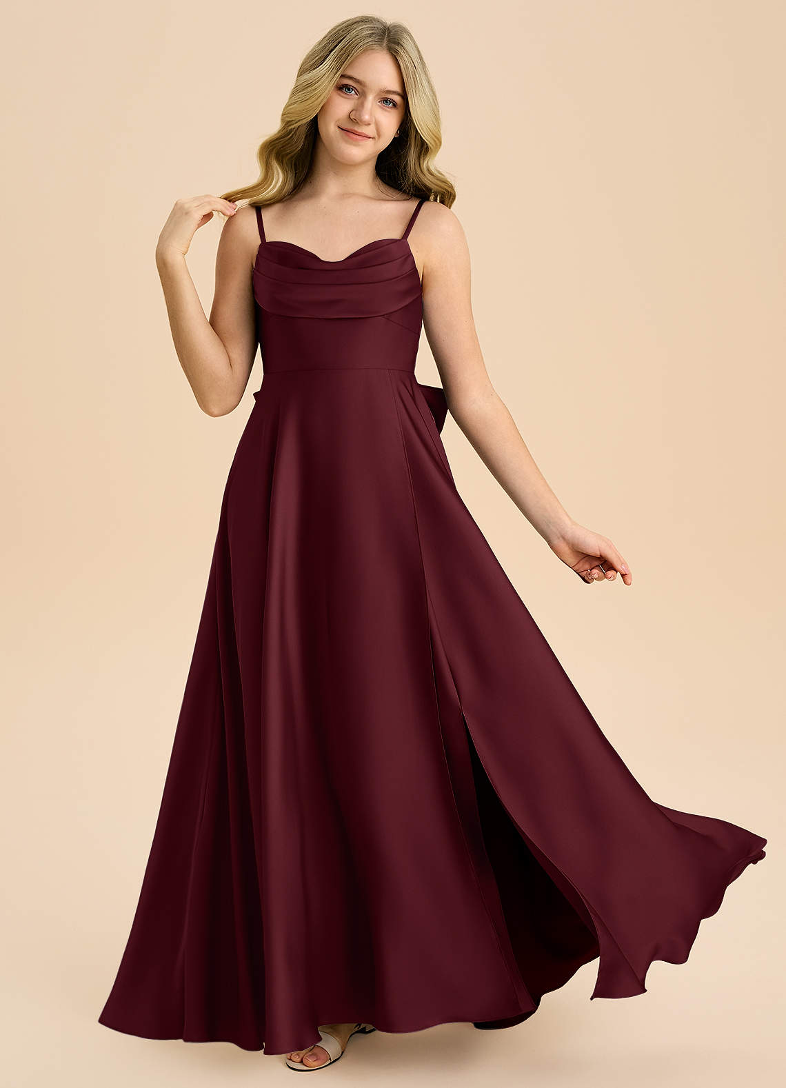 Robe Trapèze en Satin extensible Encolure en Forme de Cœur Cabernet