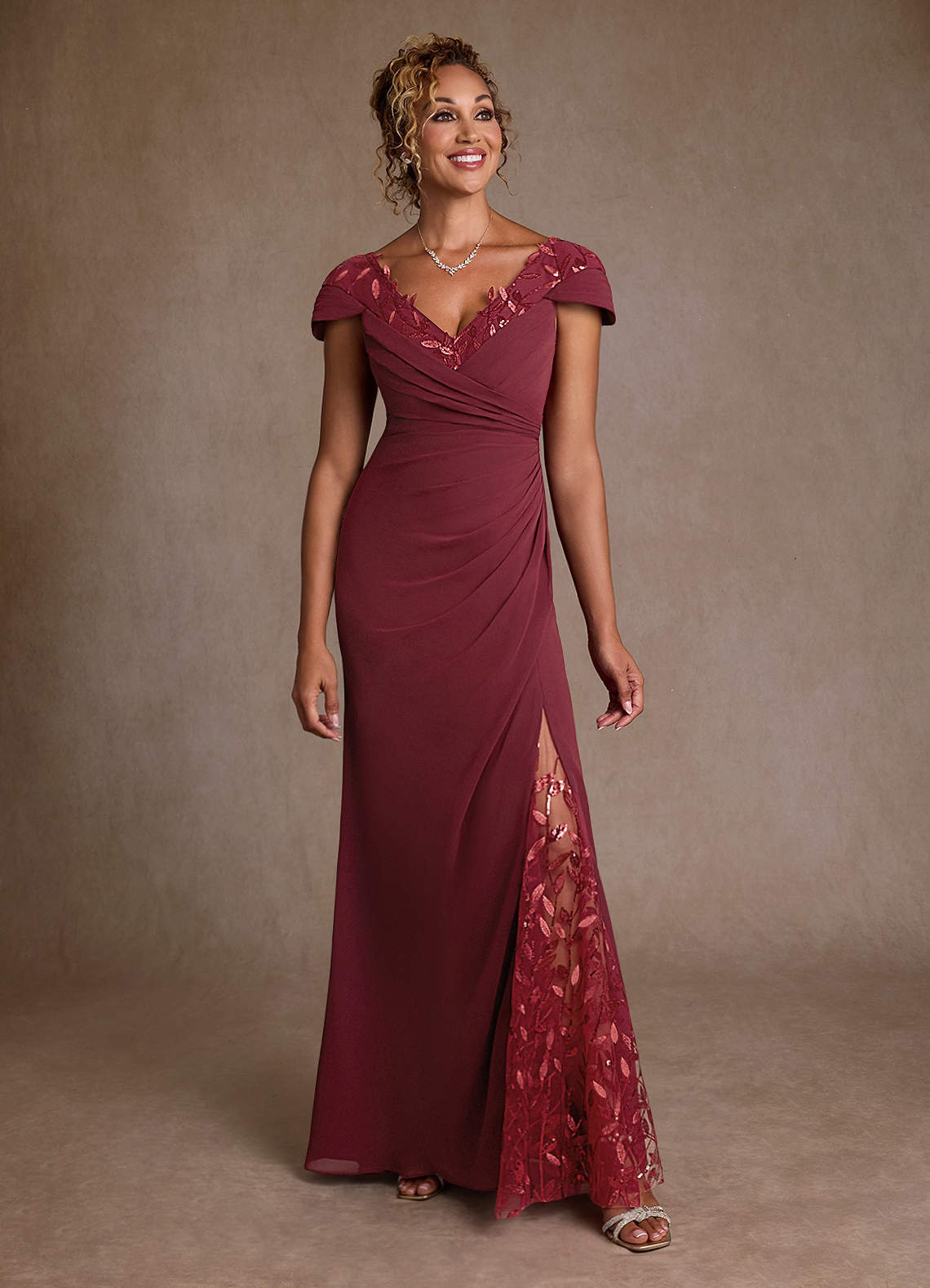 Robe Sirène en Mousseline de soie Paillettes Cabernet