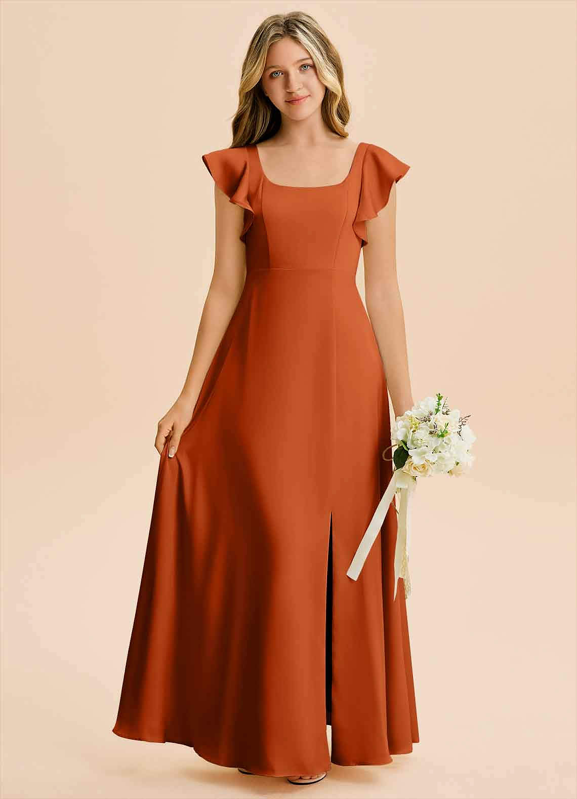 Robe Trapèze en Satin extensible Fente Latérale Orange Brûlée
