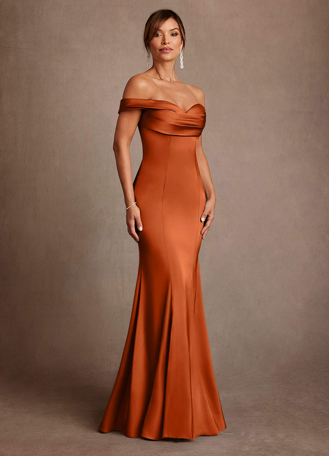 Robe Sirène en Satin extensible Épaule décolletée Orange Brûlée