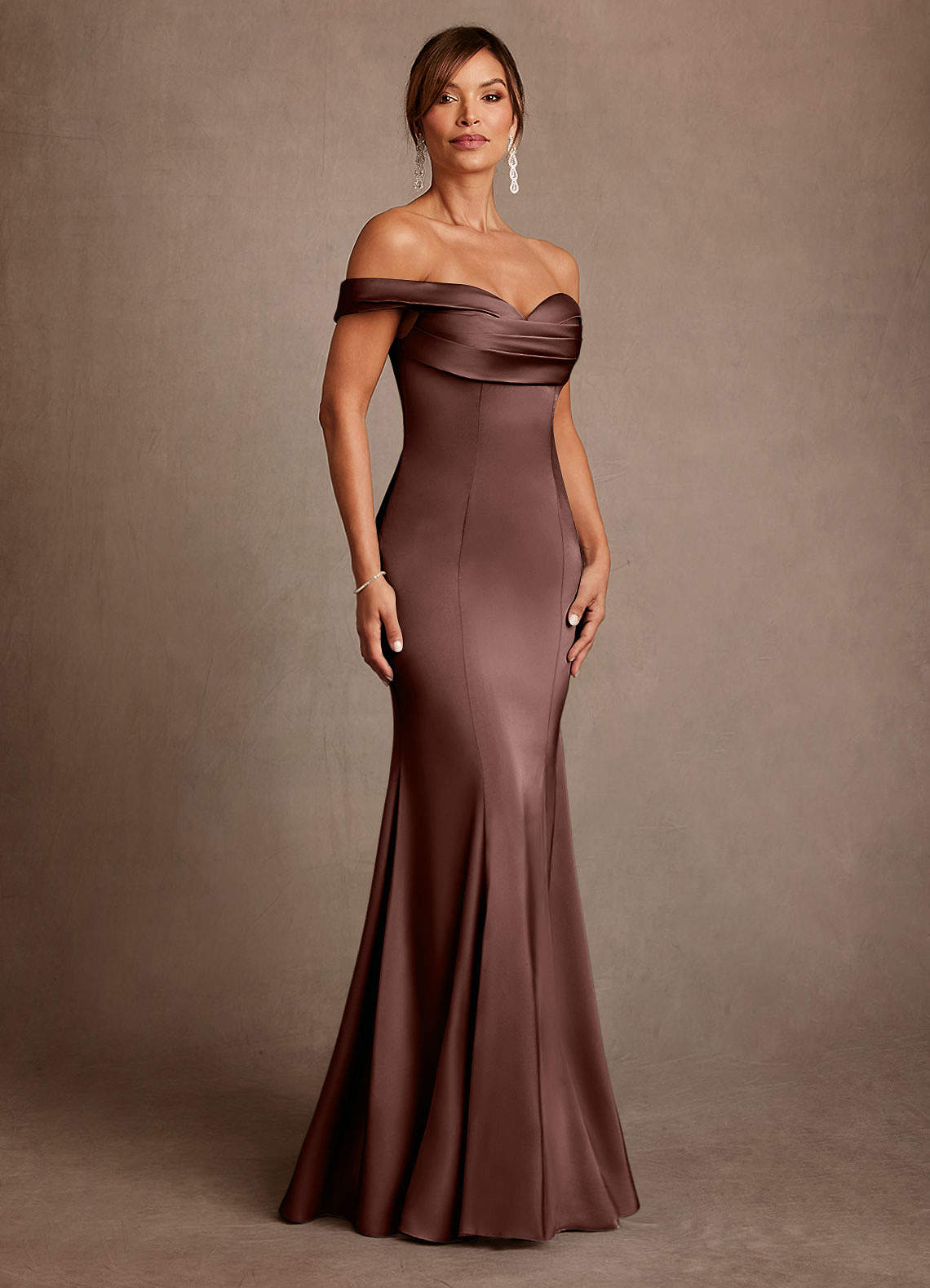 Robe Sirène en Satin extensible Épaule décolletée Expresso