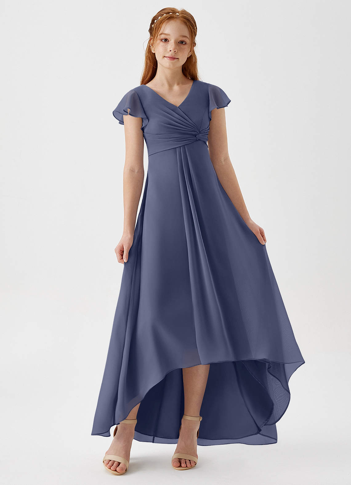 Robe Trapèze en Mousseline de soie Bleu Orageux