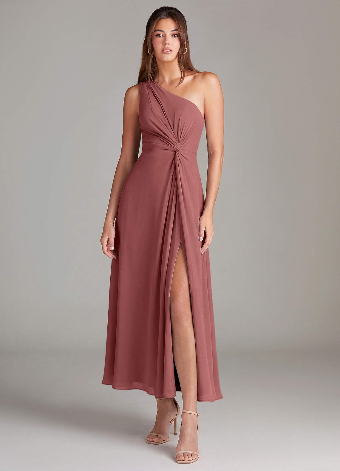 Robe Trapèze en Mousseline de soie Une épaule Améthyste