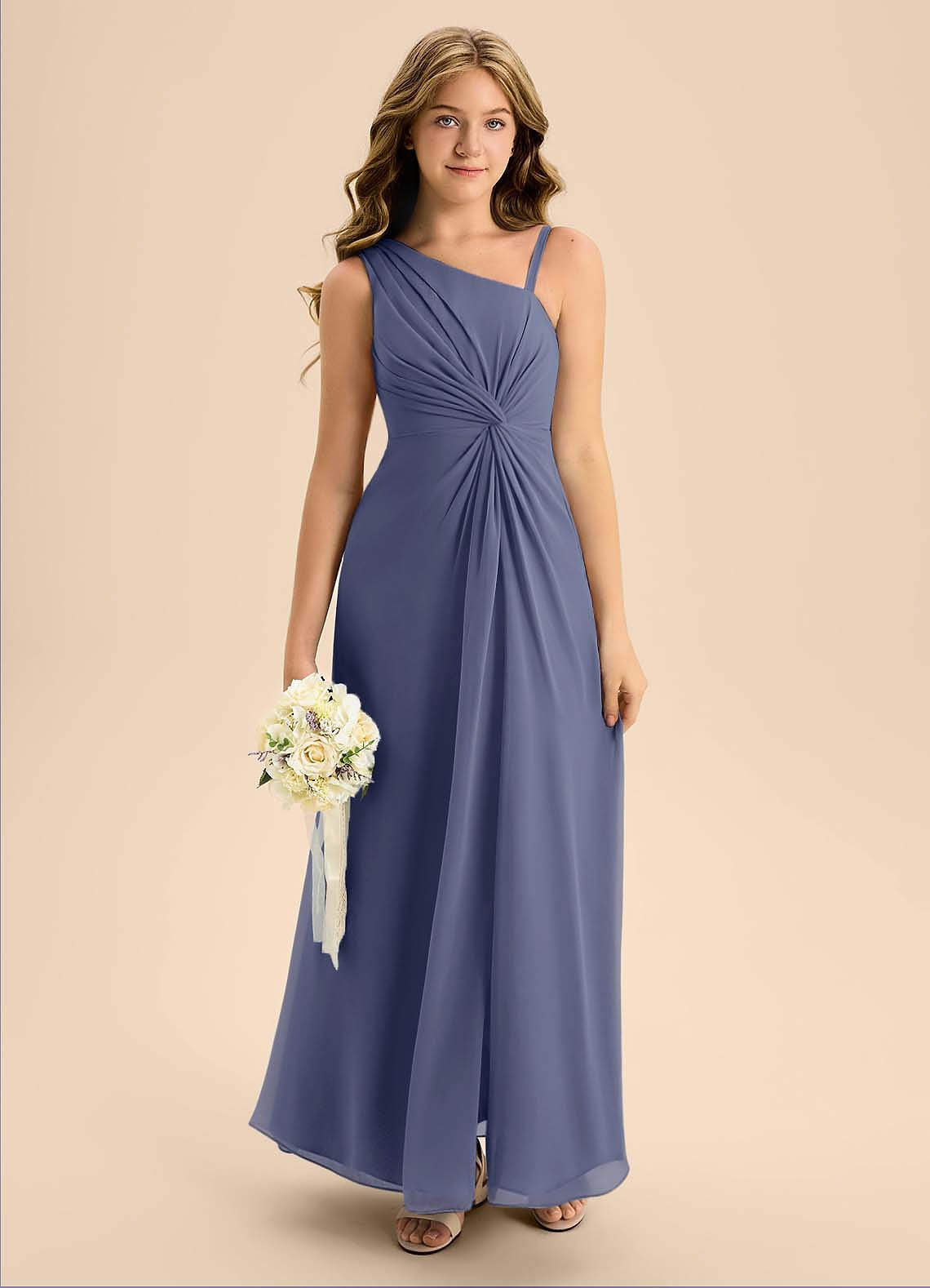 Robe Trapèze en Mousseline de soie Fente Latérale Bleu Orageux