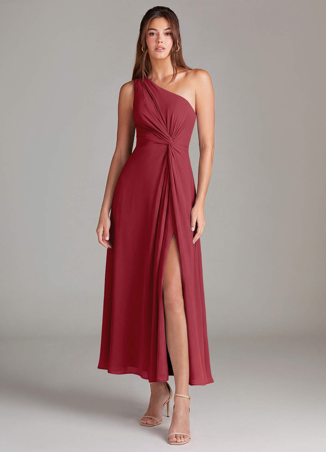 Robe Trapèze en Mousseline de soie Une épaule Grenade