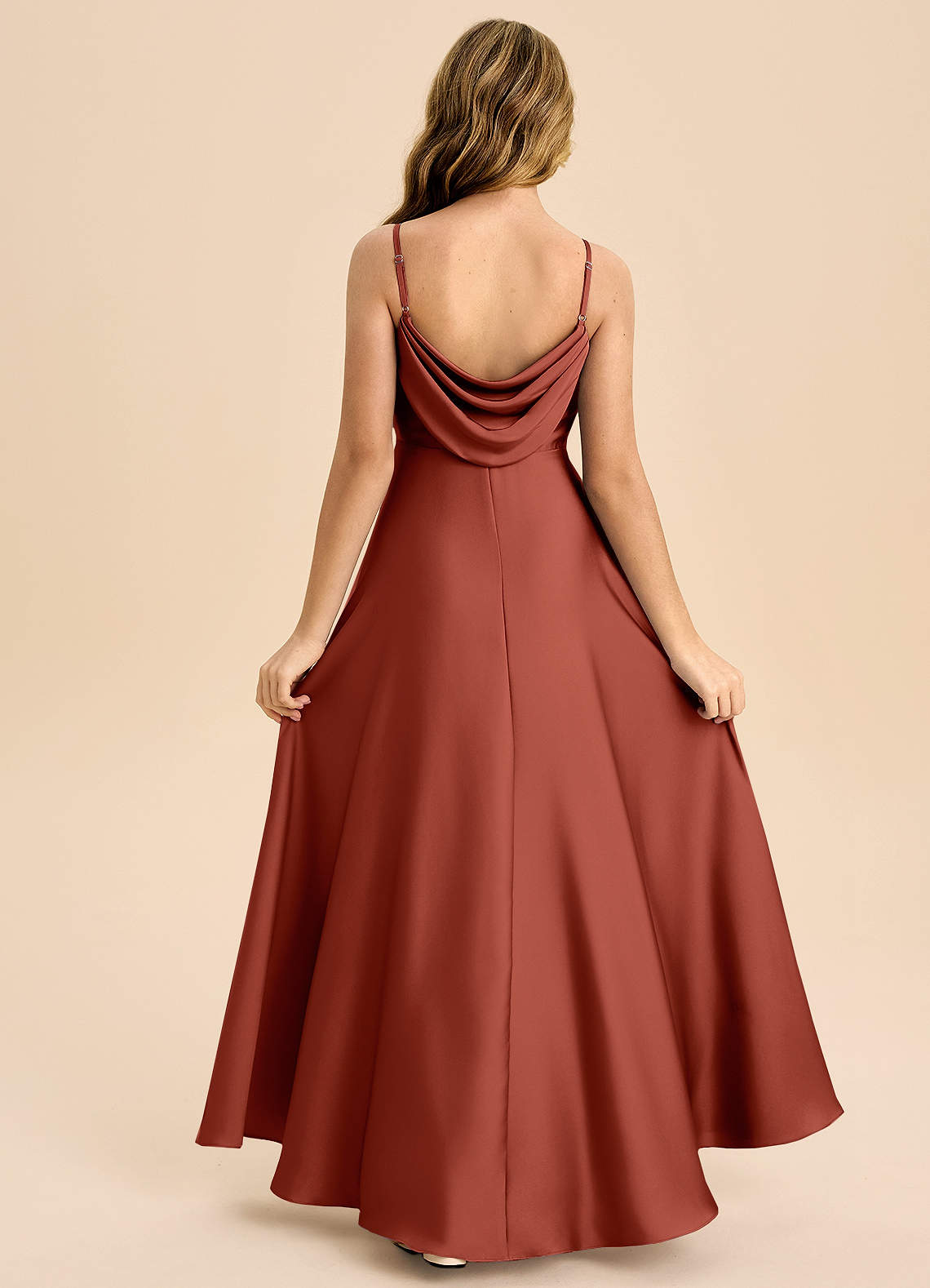 Robe Trapèze en Satin extensible Plissée Terracotta