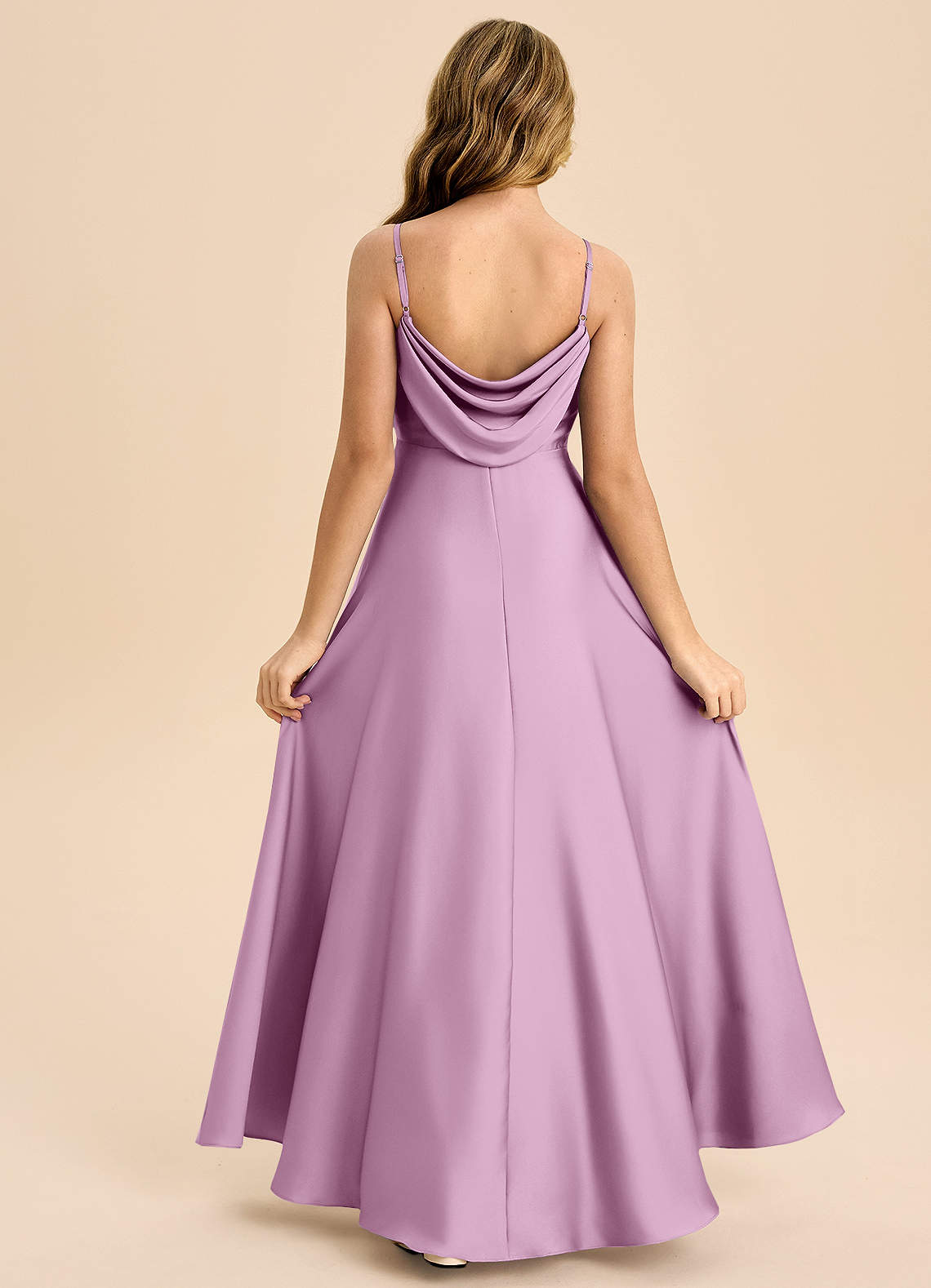 Robe Trapèze en Satin extensible Plissée Glycine