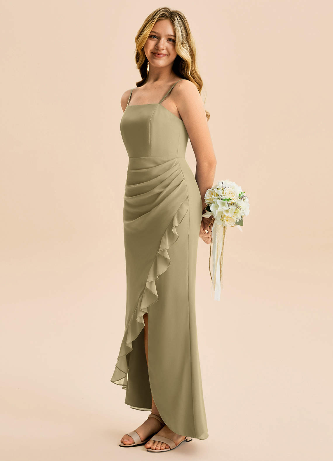 Robe Fourreau en Mousseline de soie Plissée Vert Mousse
