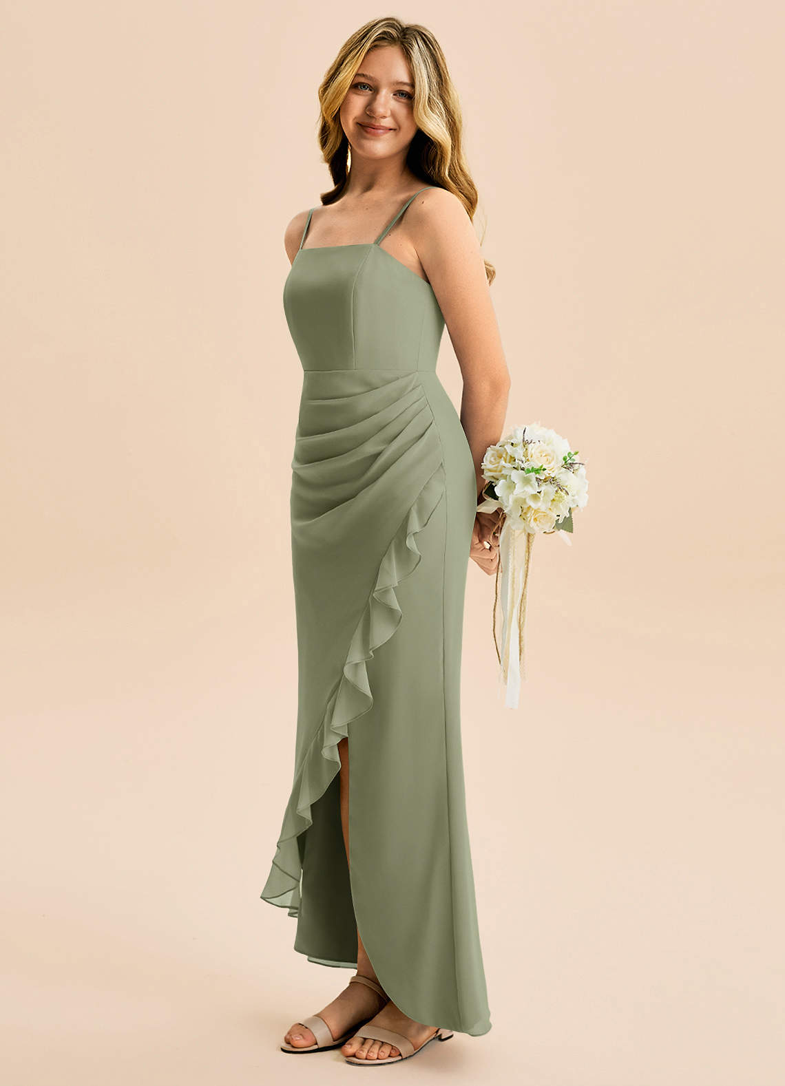 Robe Fourreau en Mousseline de soie Plissée Pistache