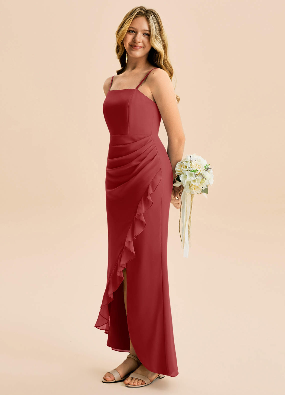 Robe Fourreau en Mousseline de soie Plissée Rouille