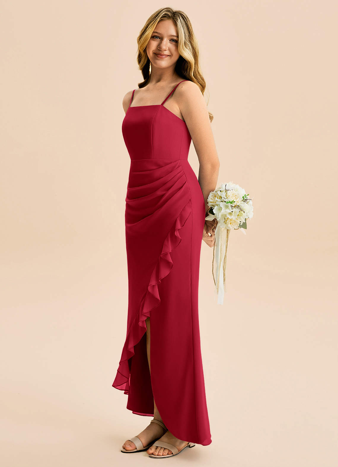 Robe Fourreau en Mousseline de soie Plissée Écarlate