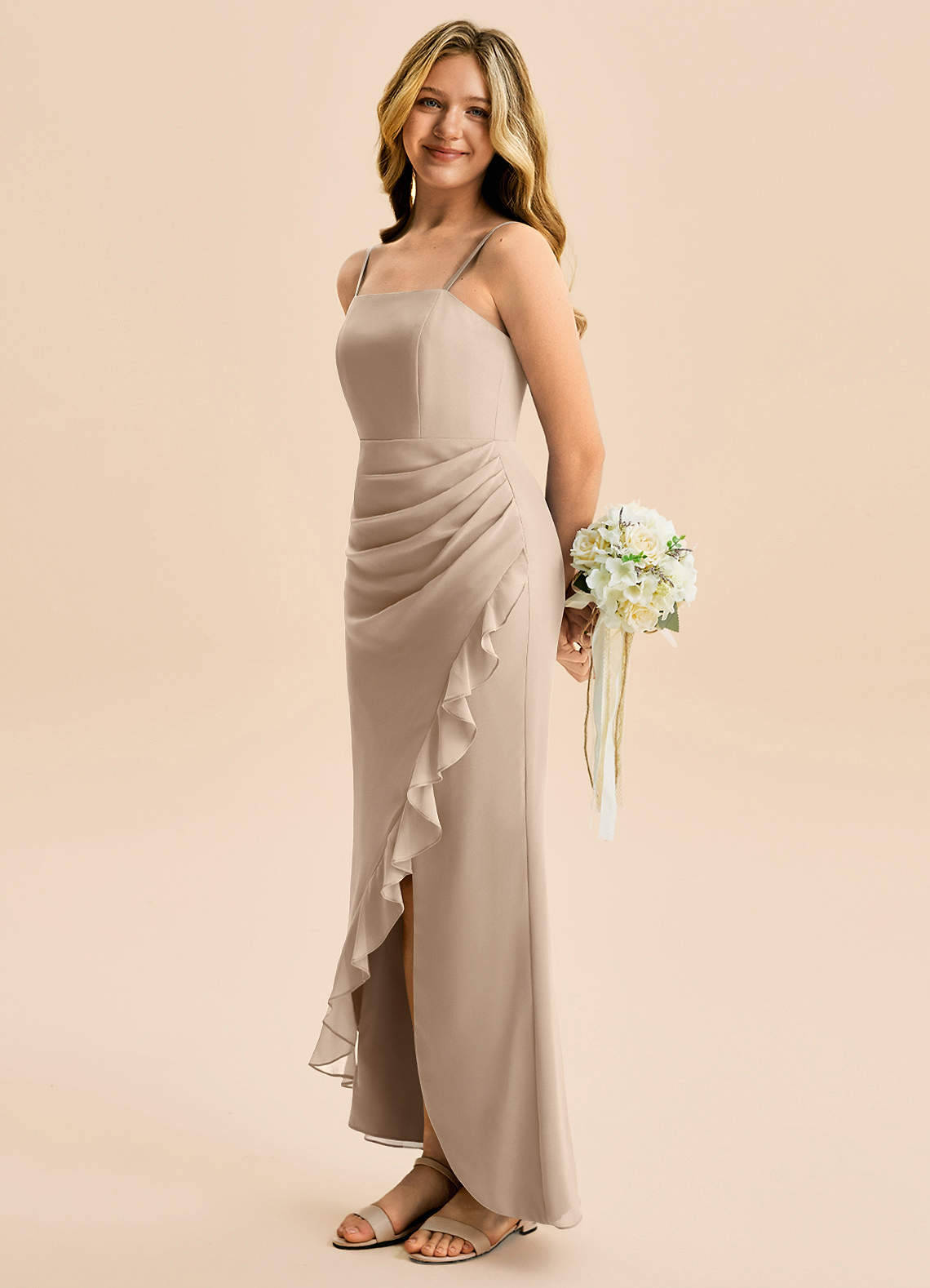 Robe Fourreau en Mousseline de soie Plissée Taupe