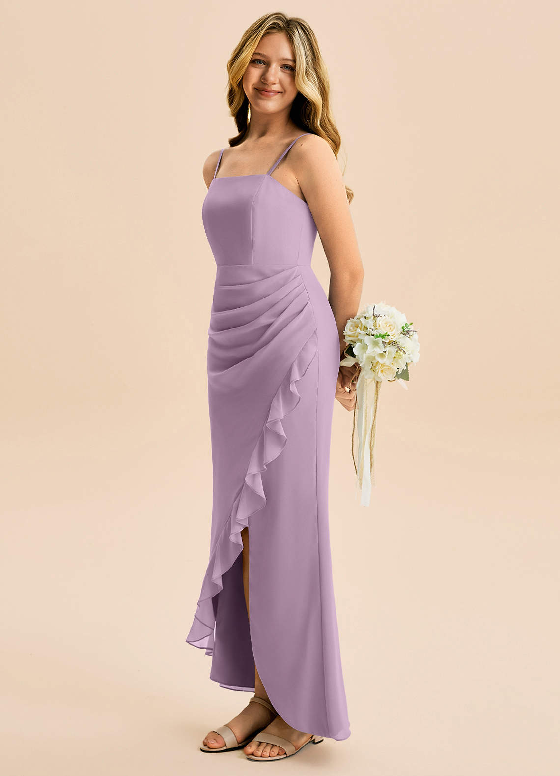 Robe Fourreau en Mousseline de soie Plissée Glycine