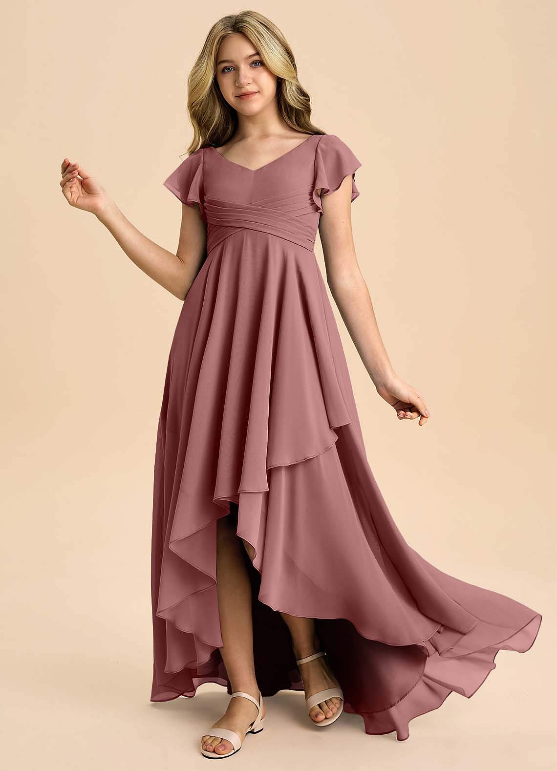 Robe Trapèze en Mousseline de soie Plissée Rose Du Désert