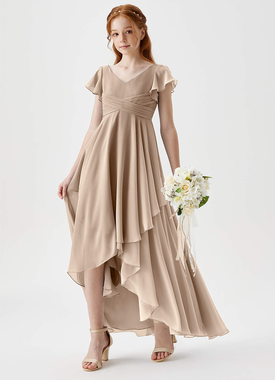 Robe Trapèze en Mousseline de soie Plissée Taupe