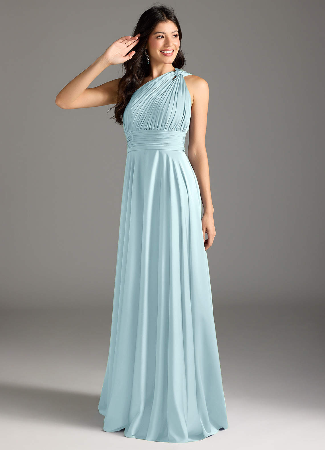 Robe Trapèze en Satin extensible Une épaule Bleu Nuage