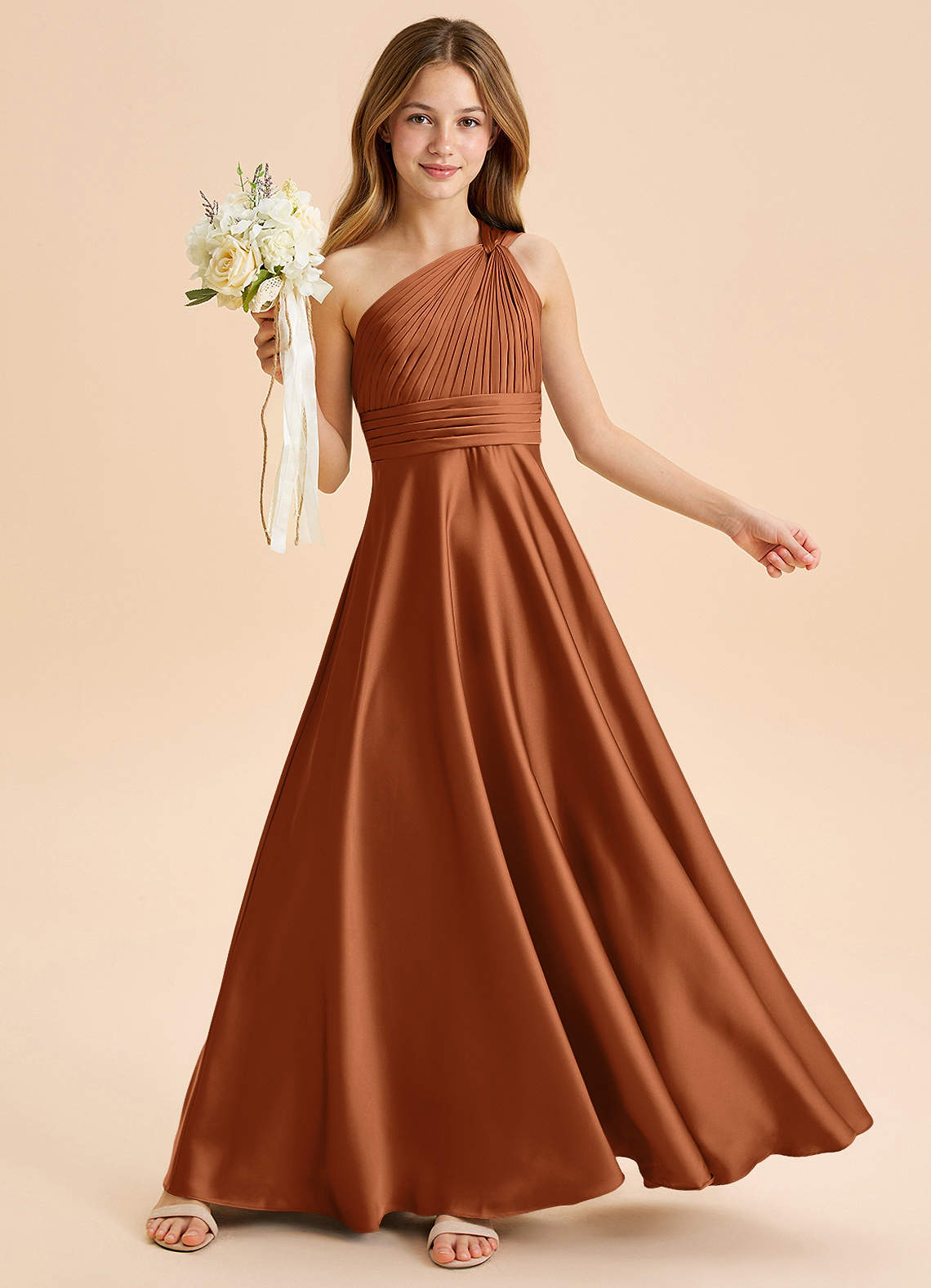 Robe Trapèze en Satin extensible Plissée Cuivre