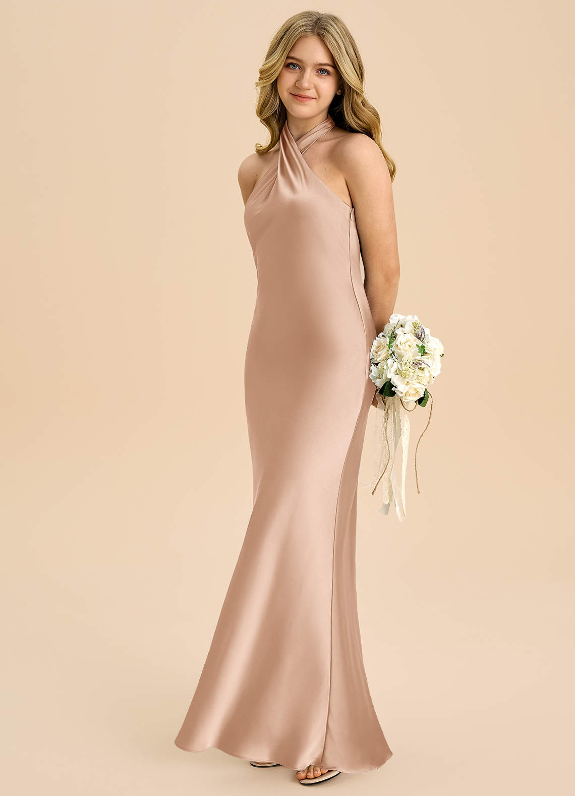 Robe Fourreau en Satin extensible Plissée Rose Perle