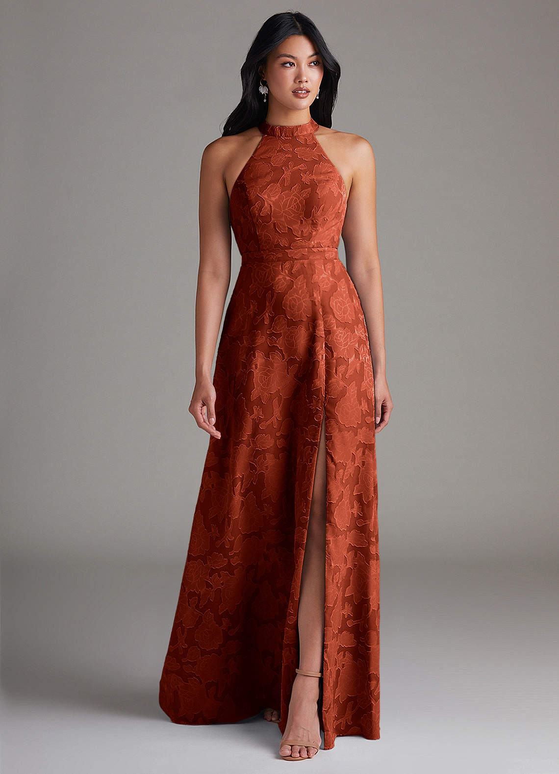 Robe Trapèze en Blumen-Burnout Fente Latérale Auburn