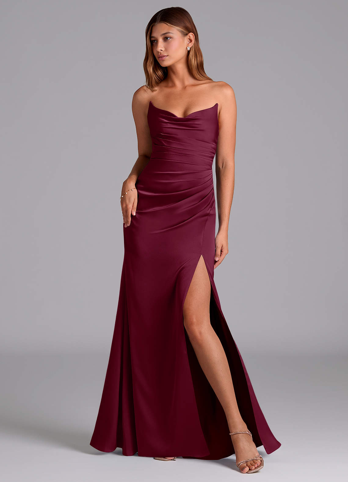 Robe Sirène en Satin extensible Sans bretelles Mûre