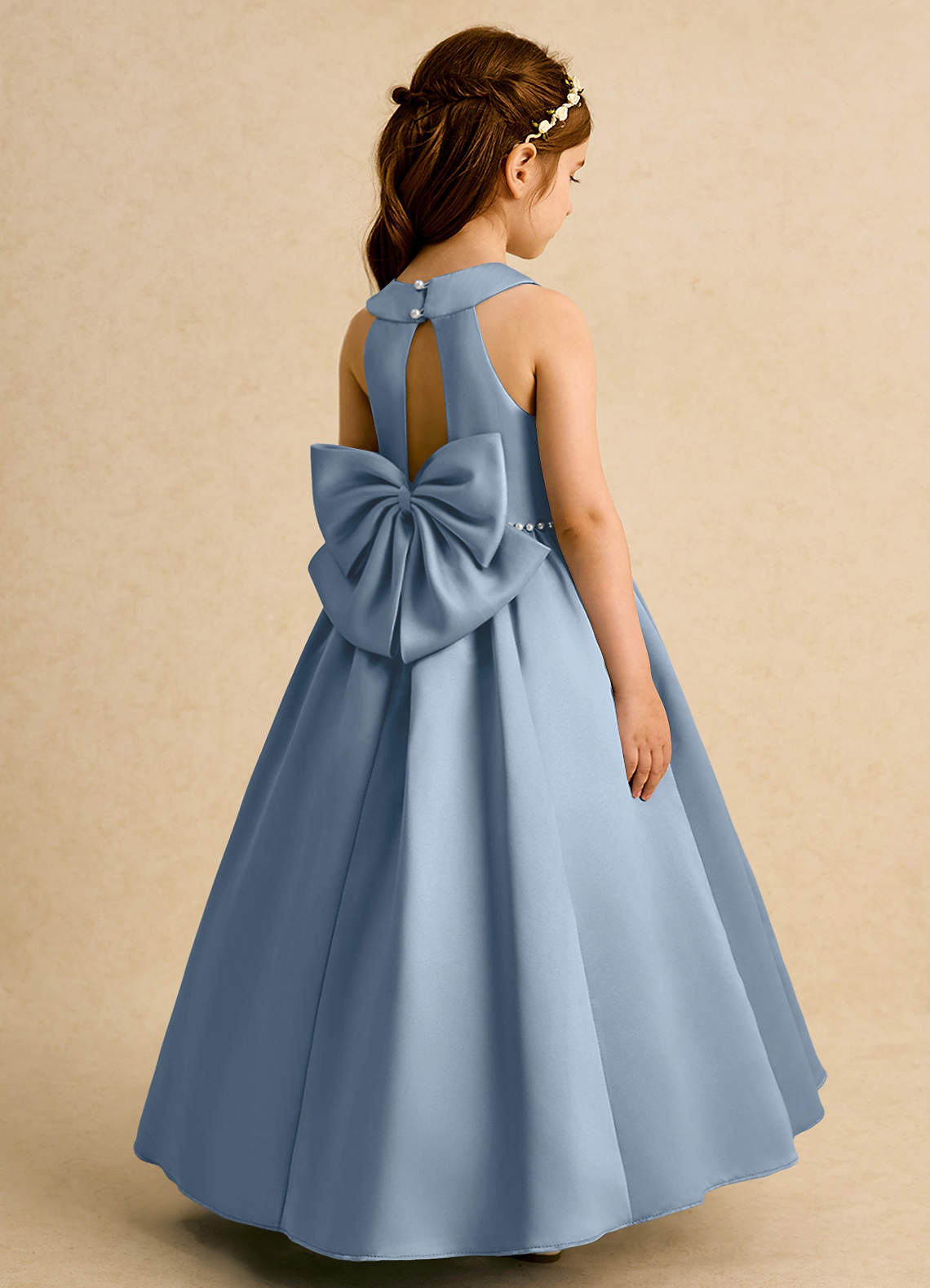 Robe Princesse en Mat Satiné Arc Bleu Poussiéreux