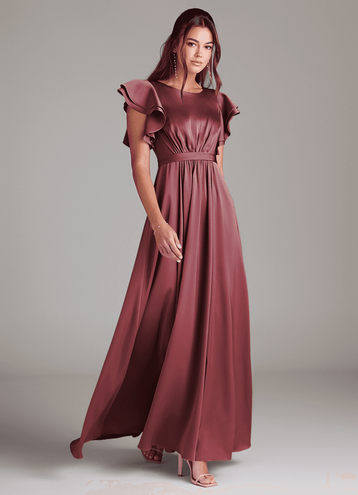 Robe Trapèze Rayé Longueur ras du sol Satin extensible Merlot