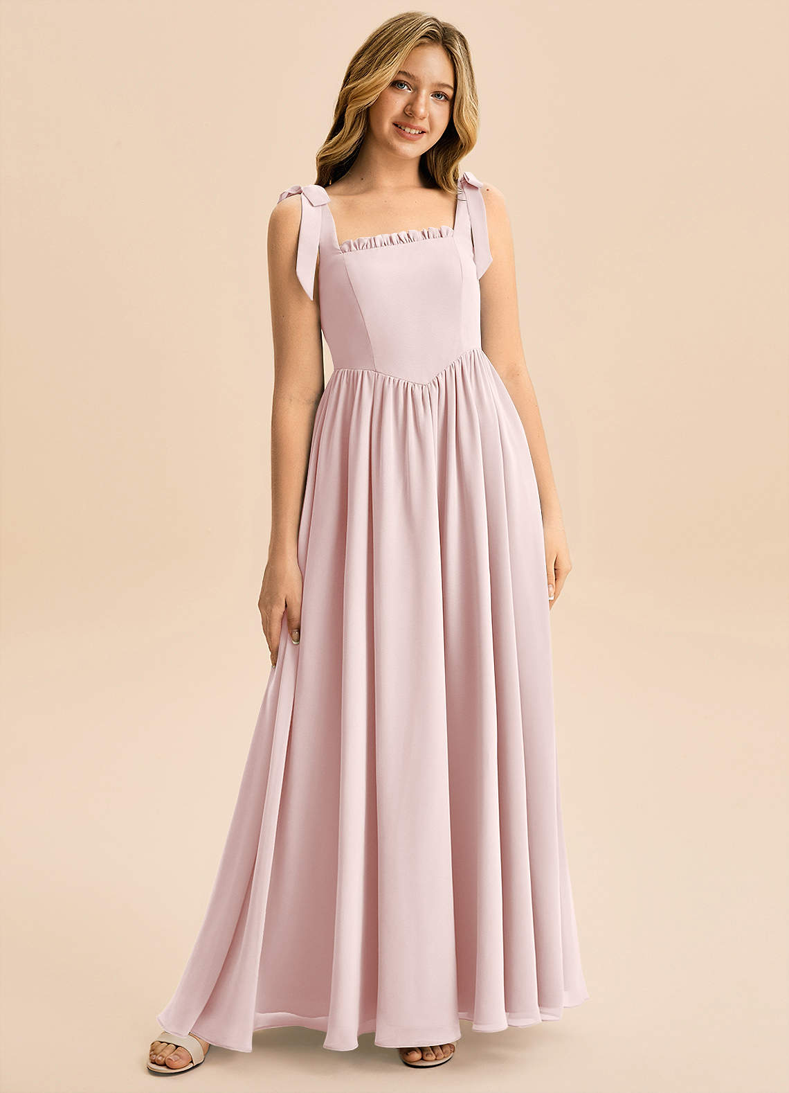 Robe Trapèze en Mousseline de soie Arc Rose Pâle