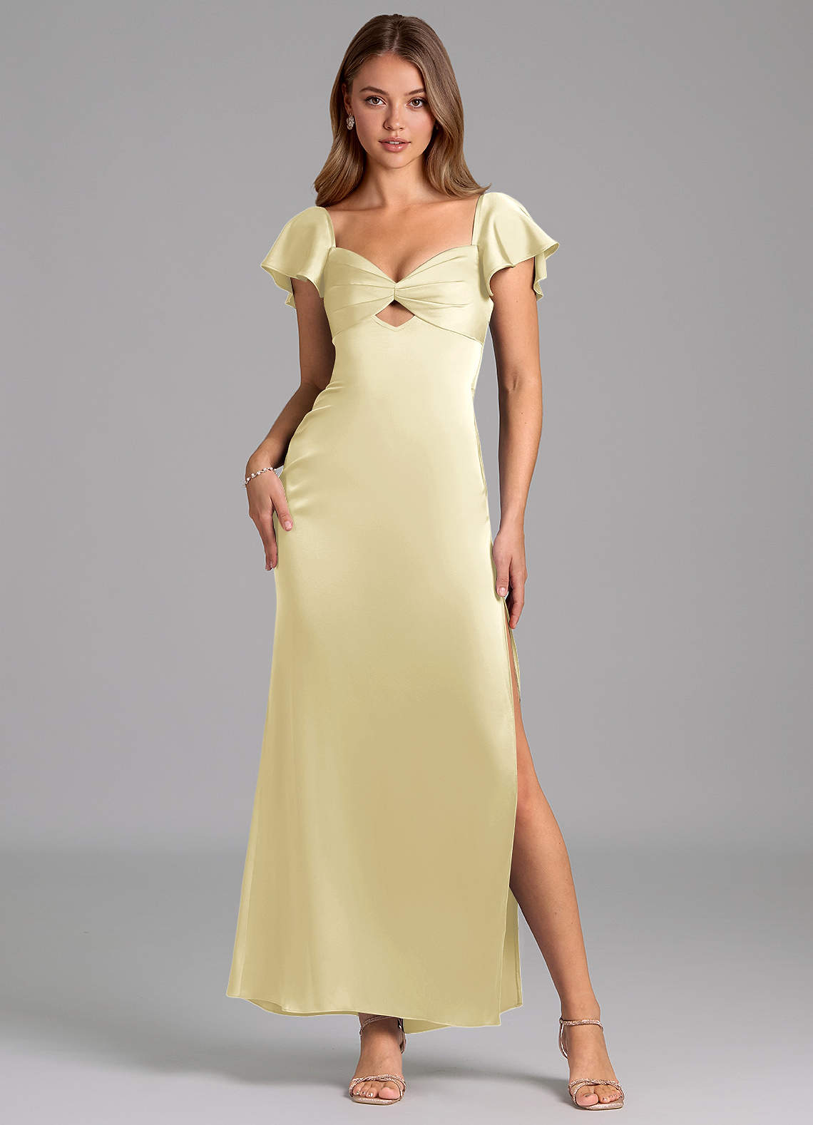 Robe Fourreau en Satin extensible Encolure en Forme de Cœur Sorbet Citron