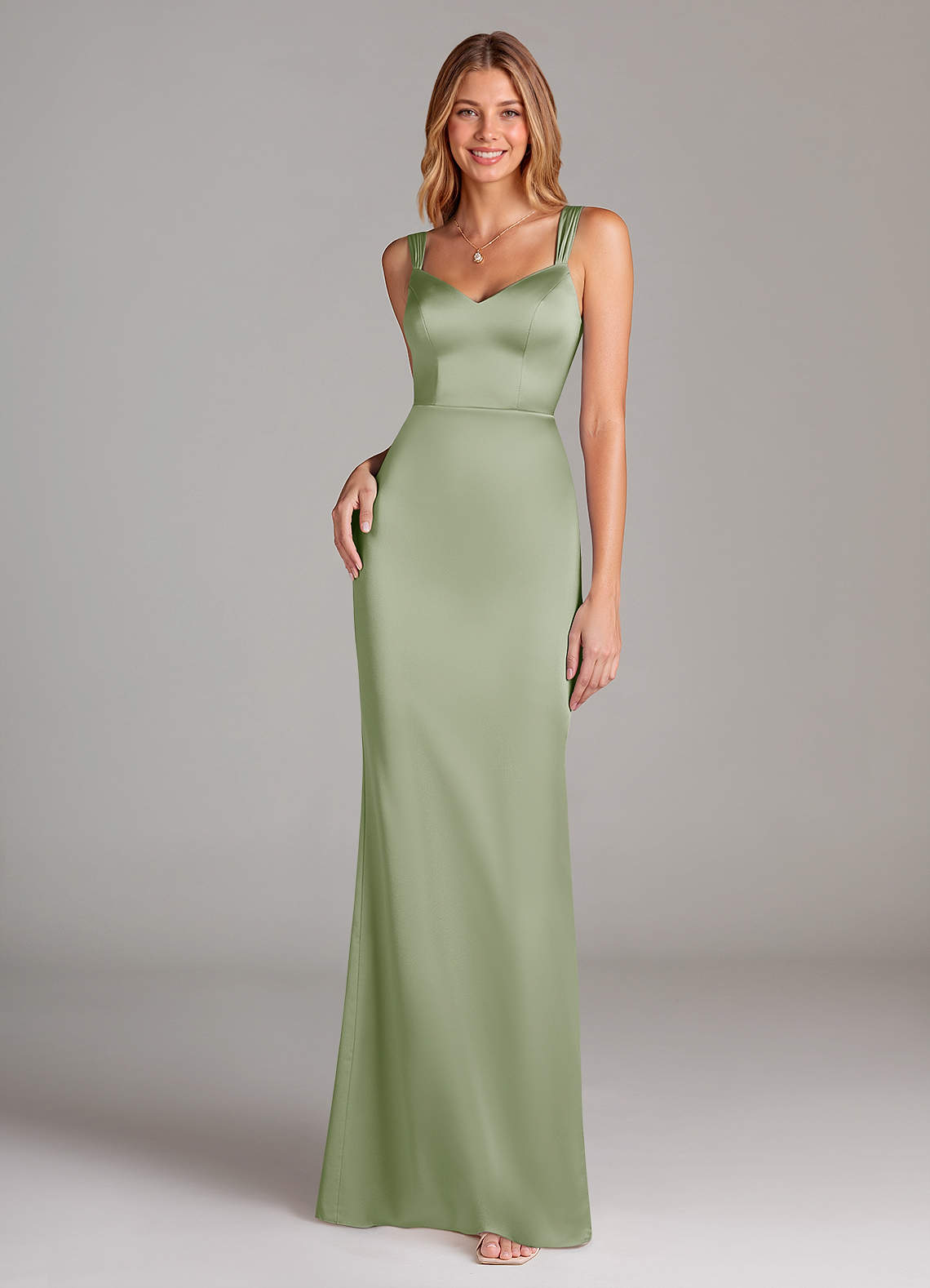 Robe Fourreau en Satin extensible Plissée Vert Sauge