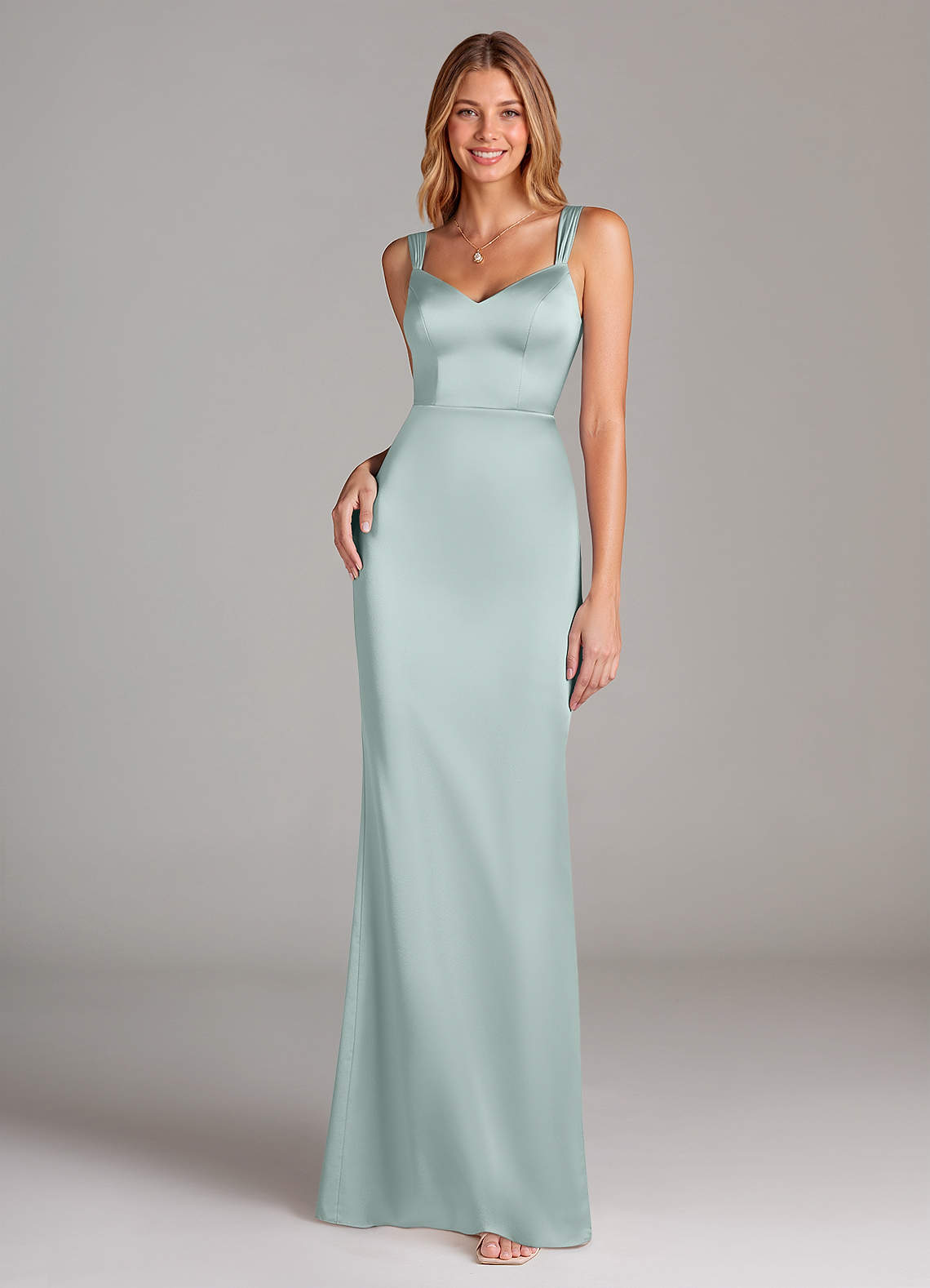Robe Fourreau en Satin extensible Plissée Brume