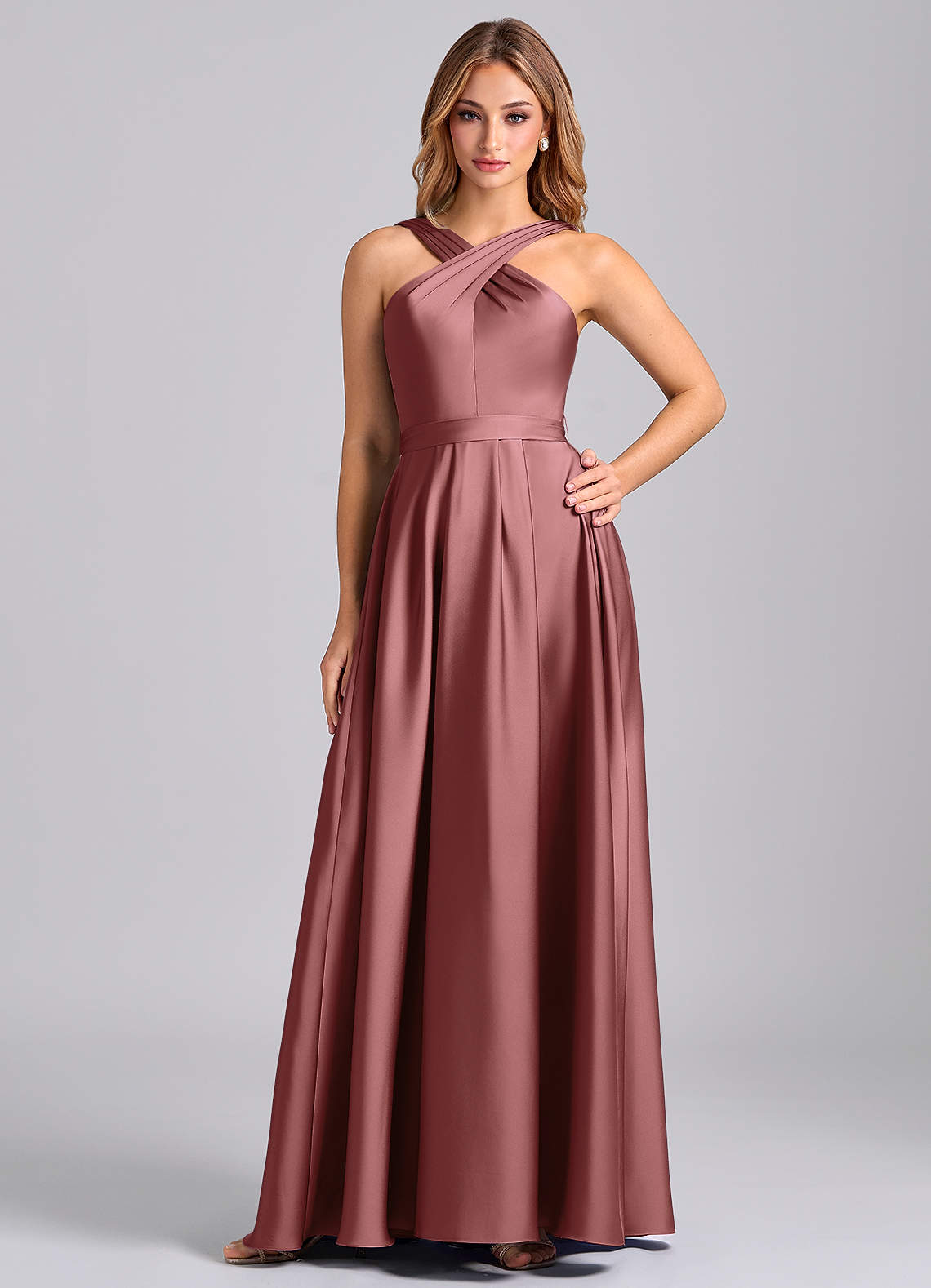 Robe Trapèze en Satin extensible Plissée Améthyste