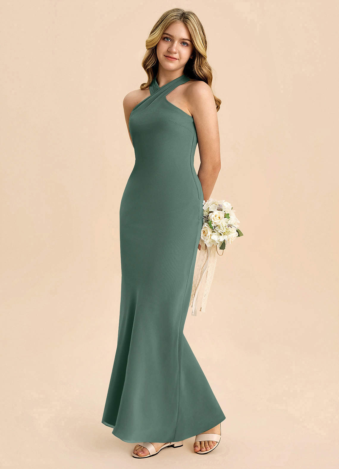 Robe Fourreau en Mousseline de soie Plissée Mousse De Mer
