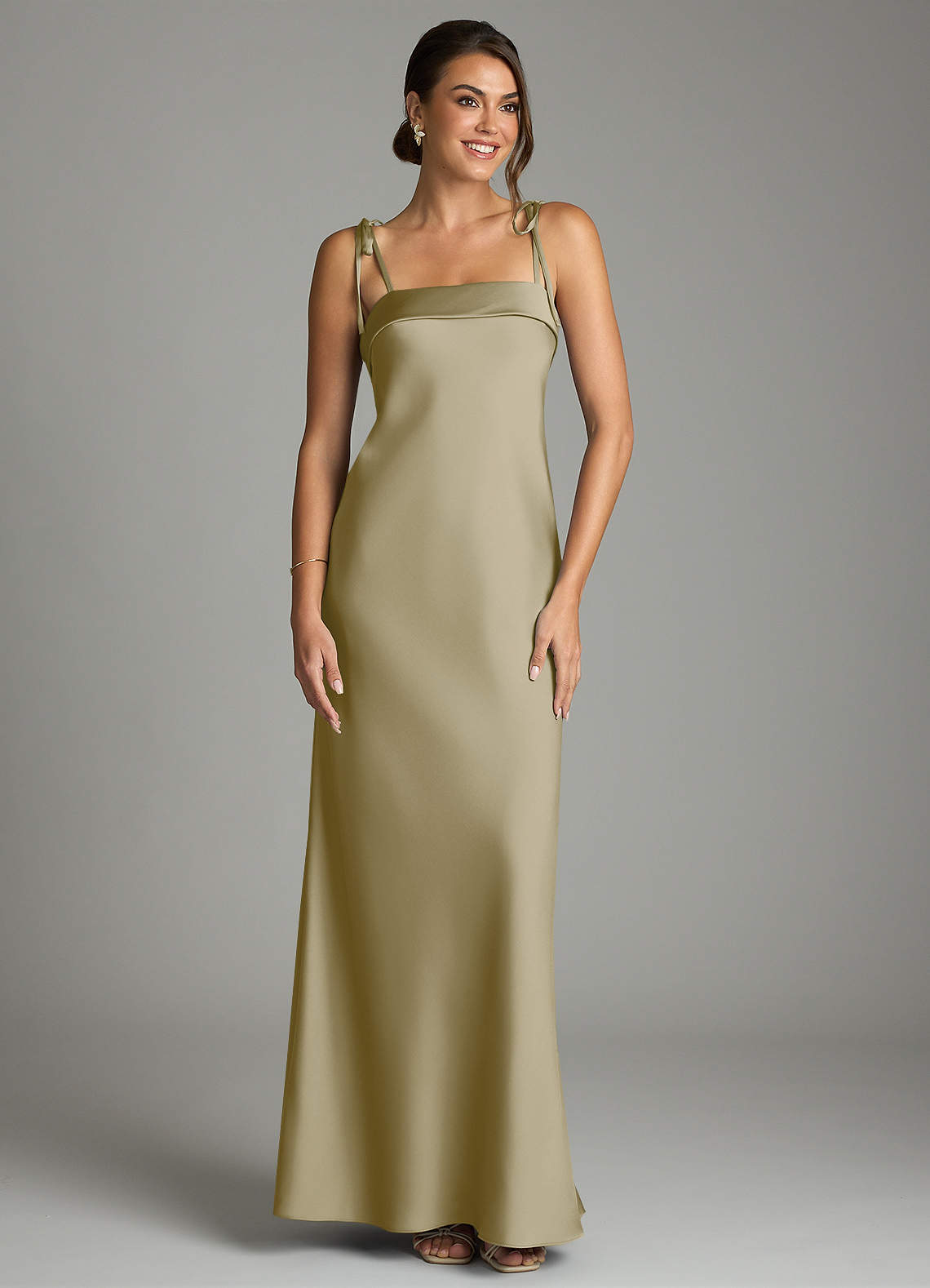 Robe Fourreau en Satin extensible Arc Vert Mousse