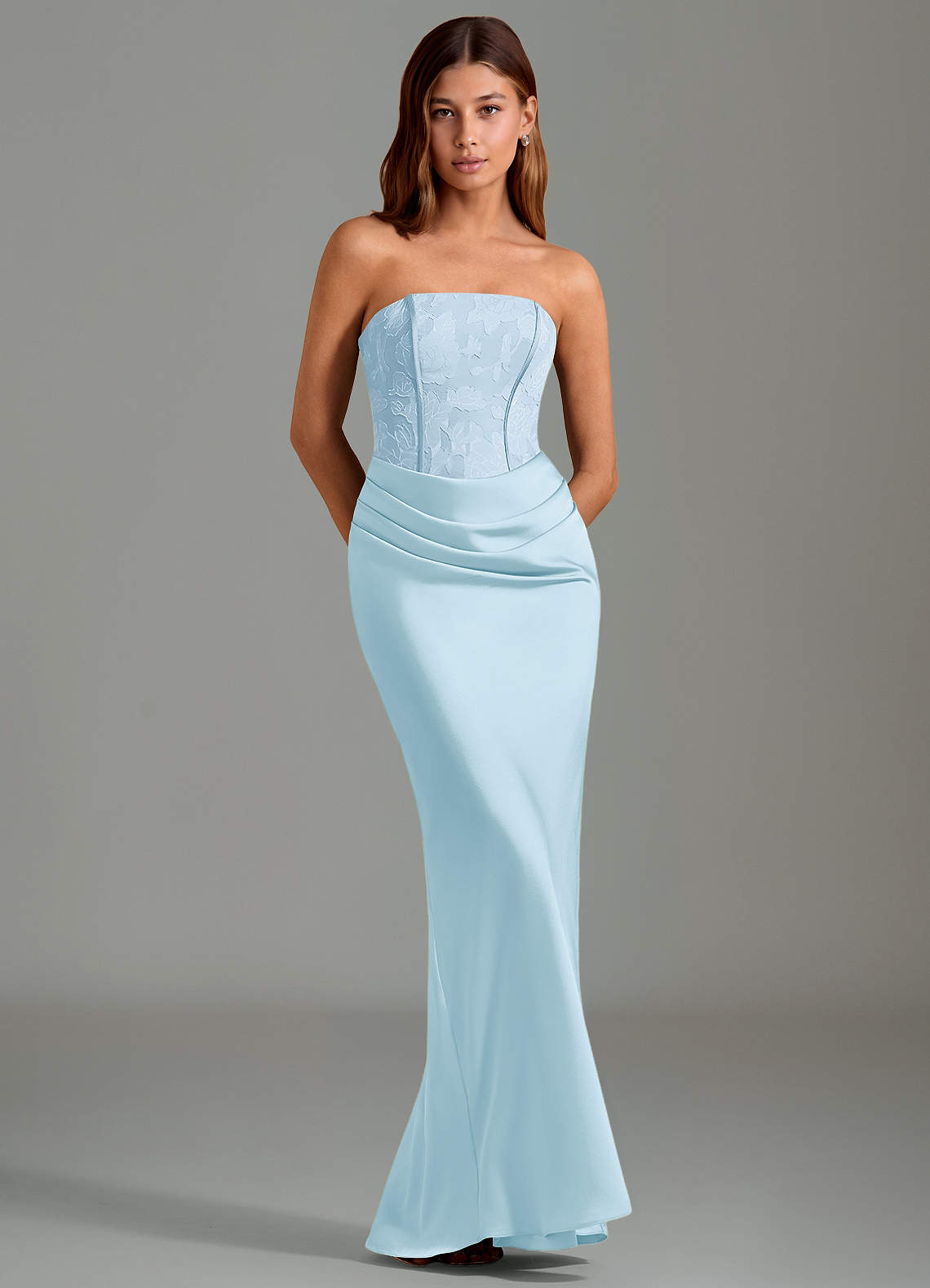 Robe Sirène en Satin extensible Sans bretelles Bleu Ciel