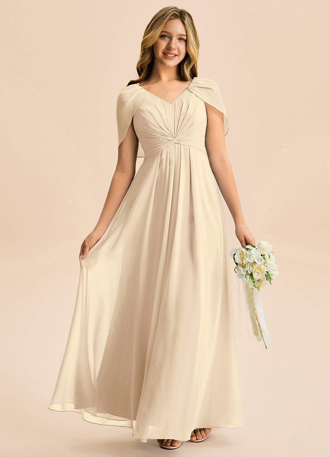 Robe Trapèze en Mousseline de soie Plissée Champagne