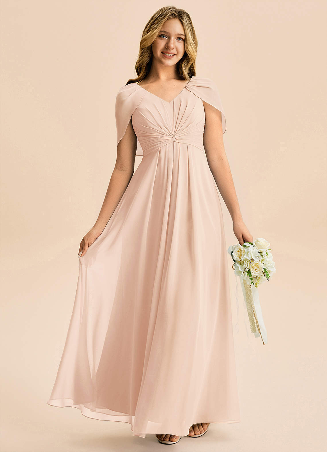 Robe Trapèze en Mousseline de soie Plissée Rose Perle