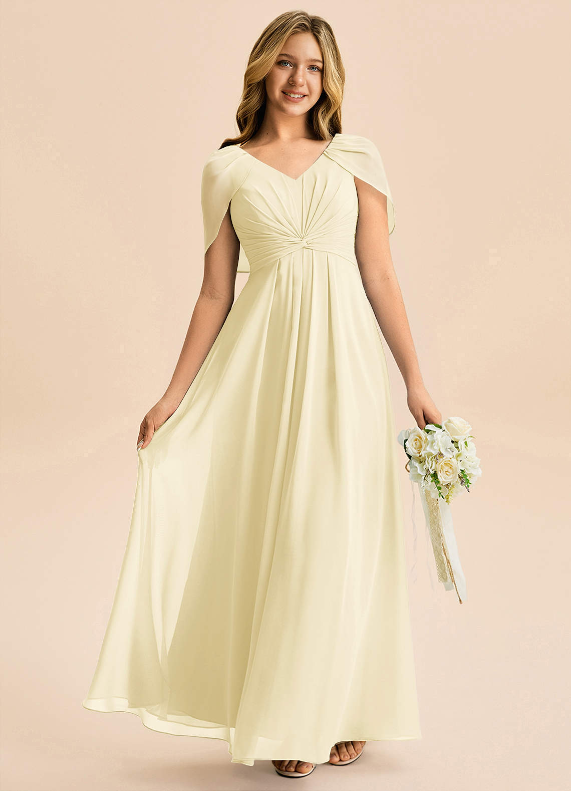 Robe Trapèze en Mousseline de soie Plissée Sorbet Citron