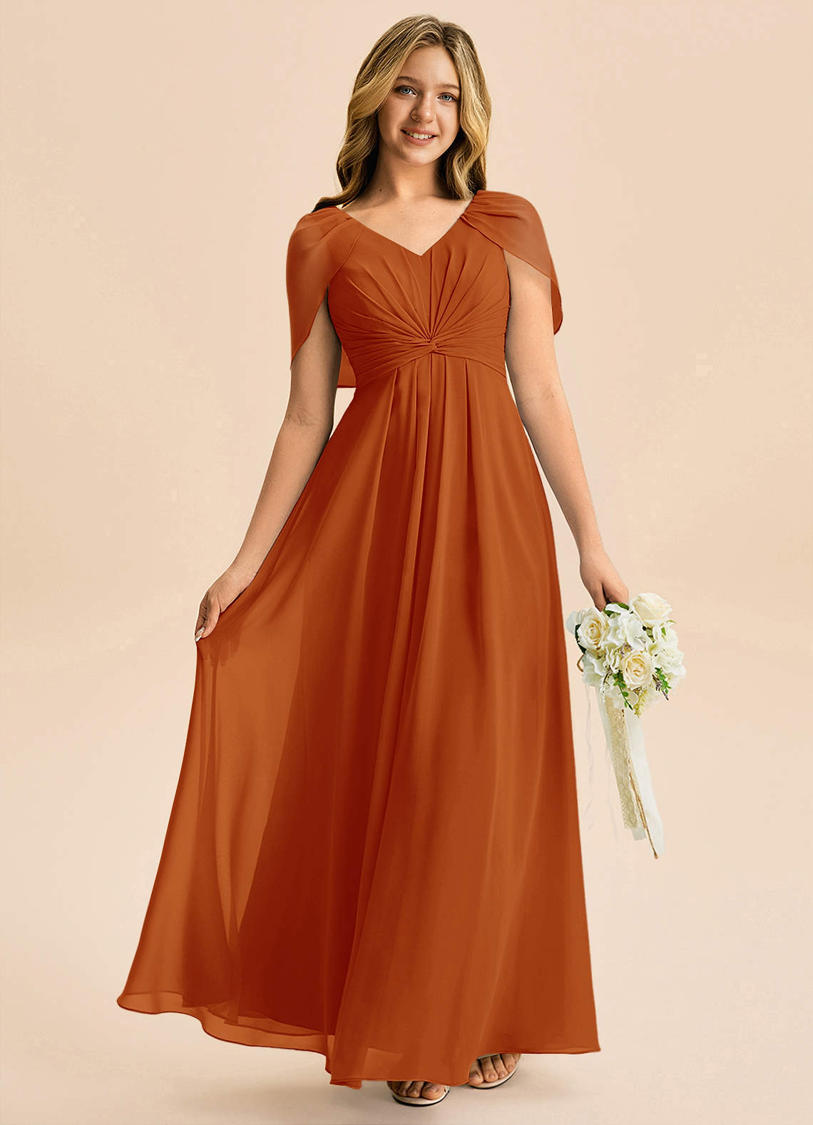 Robe Trapèze en Mousseline de soie Plissée Paprika