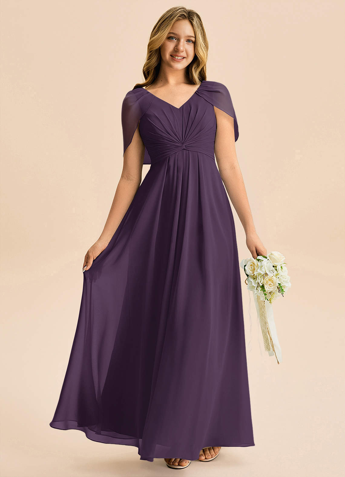 Robe Trapèze en Mousseline de soie Plissée Prune