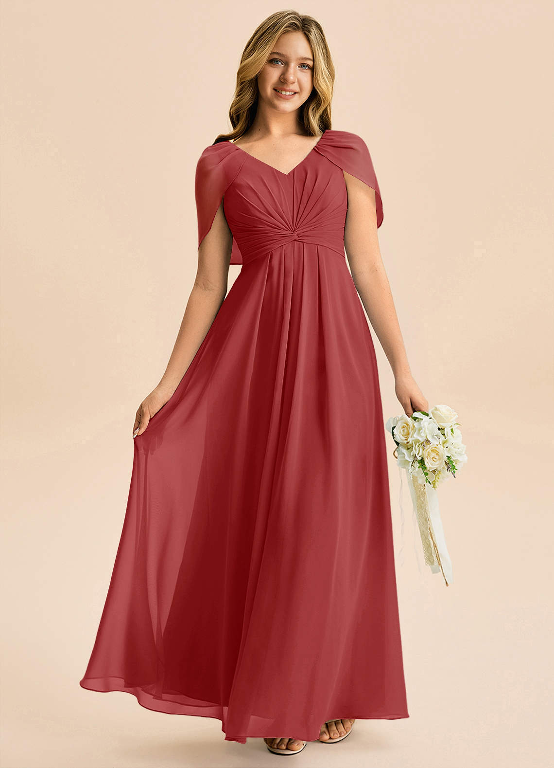 Robe Trapèze en Mousseline de soie Plissée Rouille