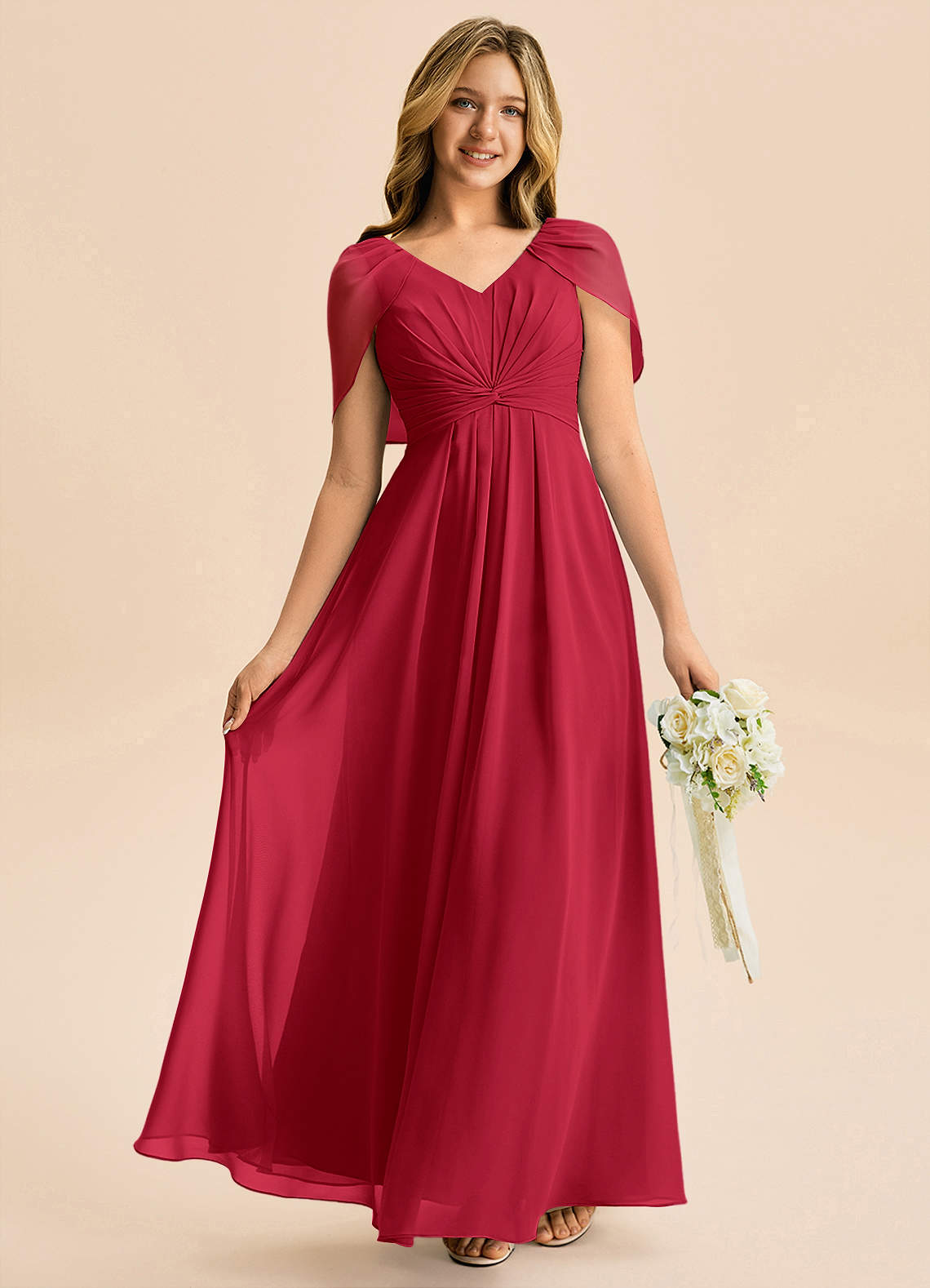 Robe Trapèze en Mousseline de soie Plissée Écarlate