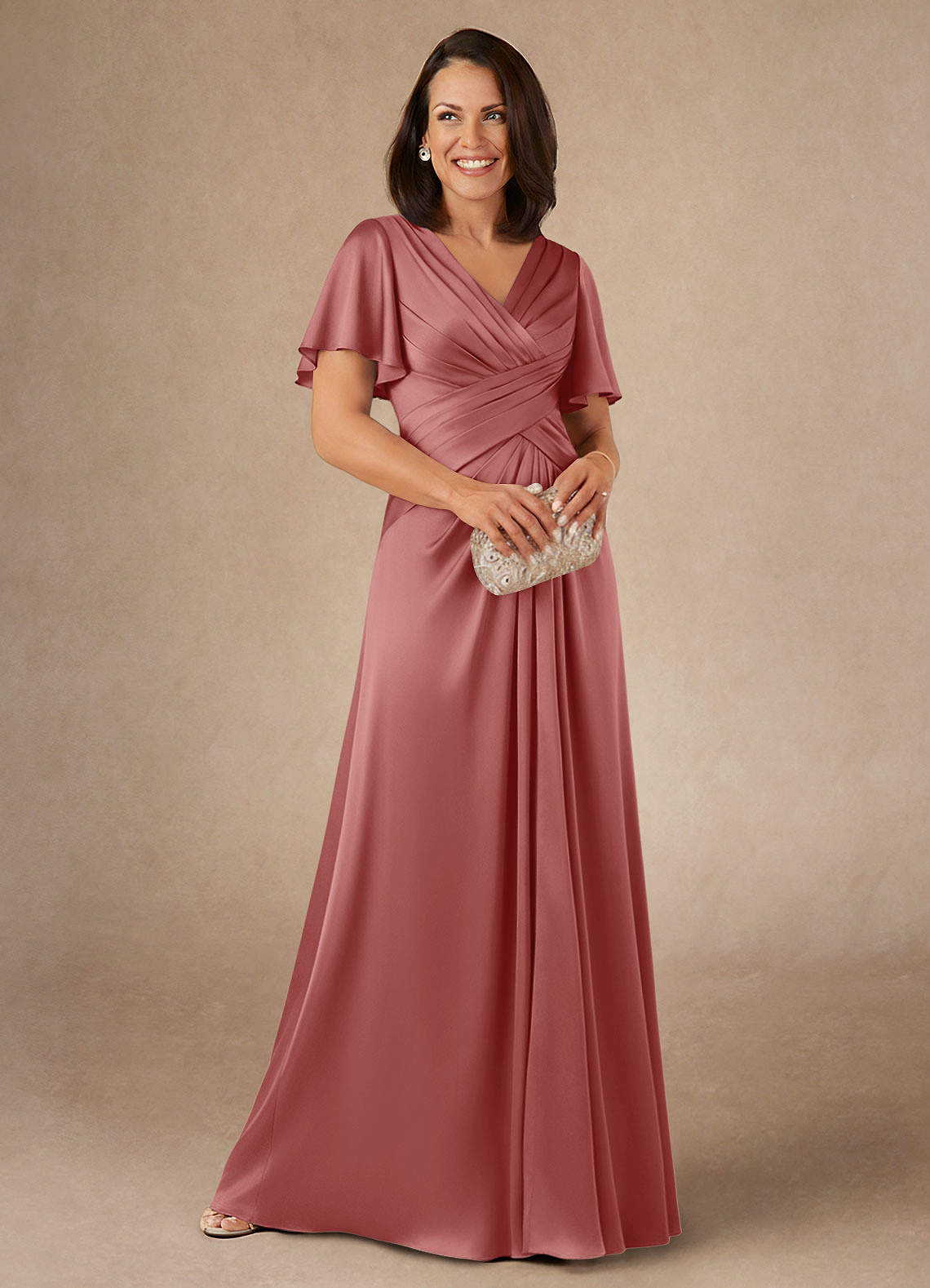 Robe Trapèze en Satin extensible Plissée Antique Rose