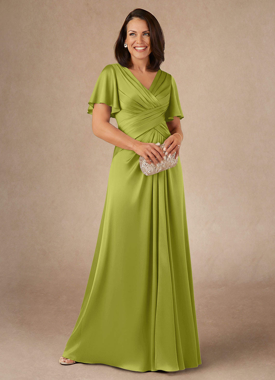 Robe Trapèze en Satin extensible Plissée Citronnelle