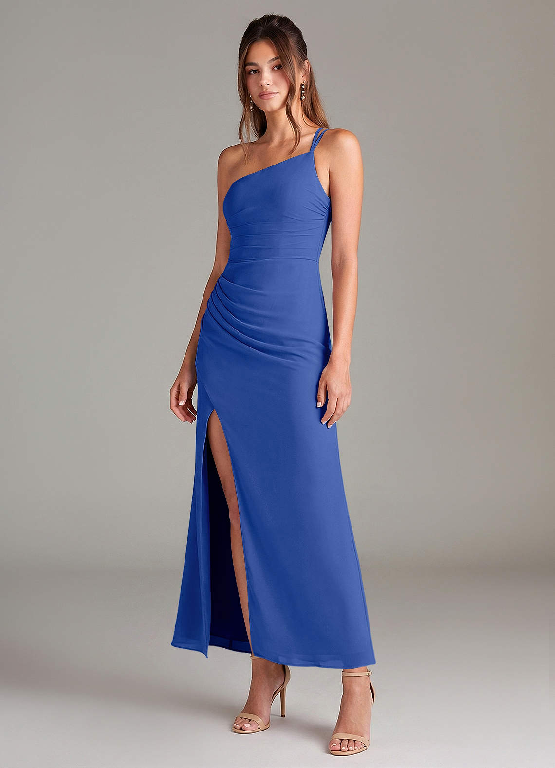 Robe Sirène en Mousseline de soie Une épaule Bleu Roi