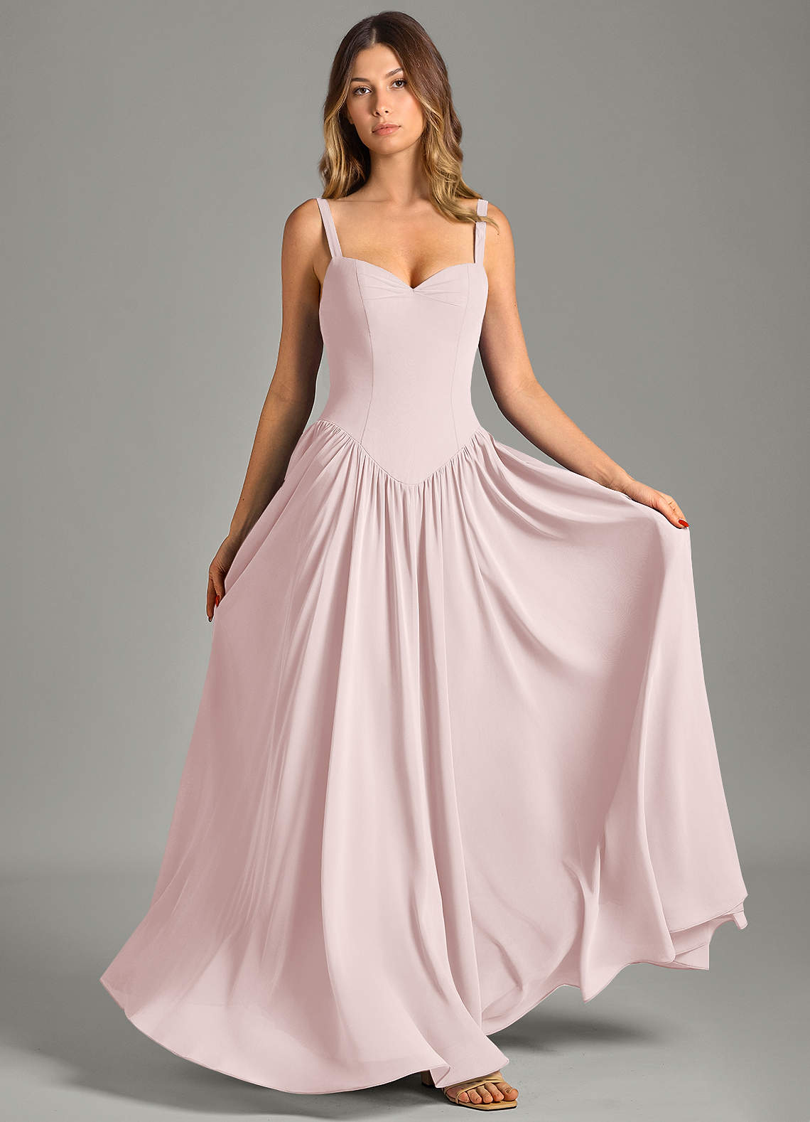 Robe Trapèze en Mousseline de soie Corset Rose Pâle