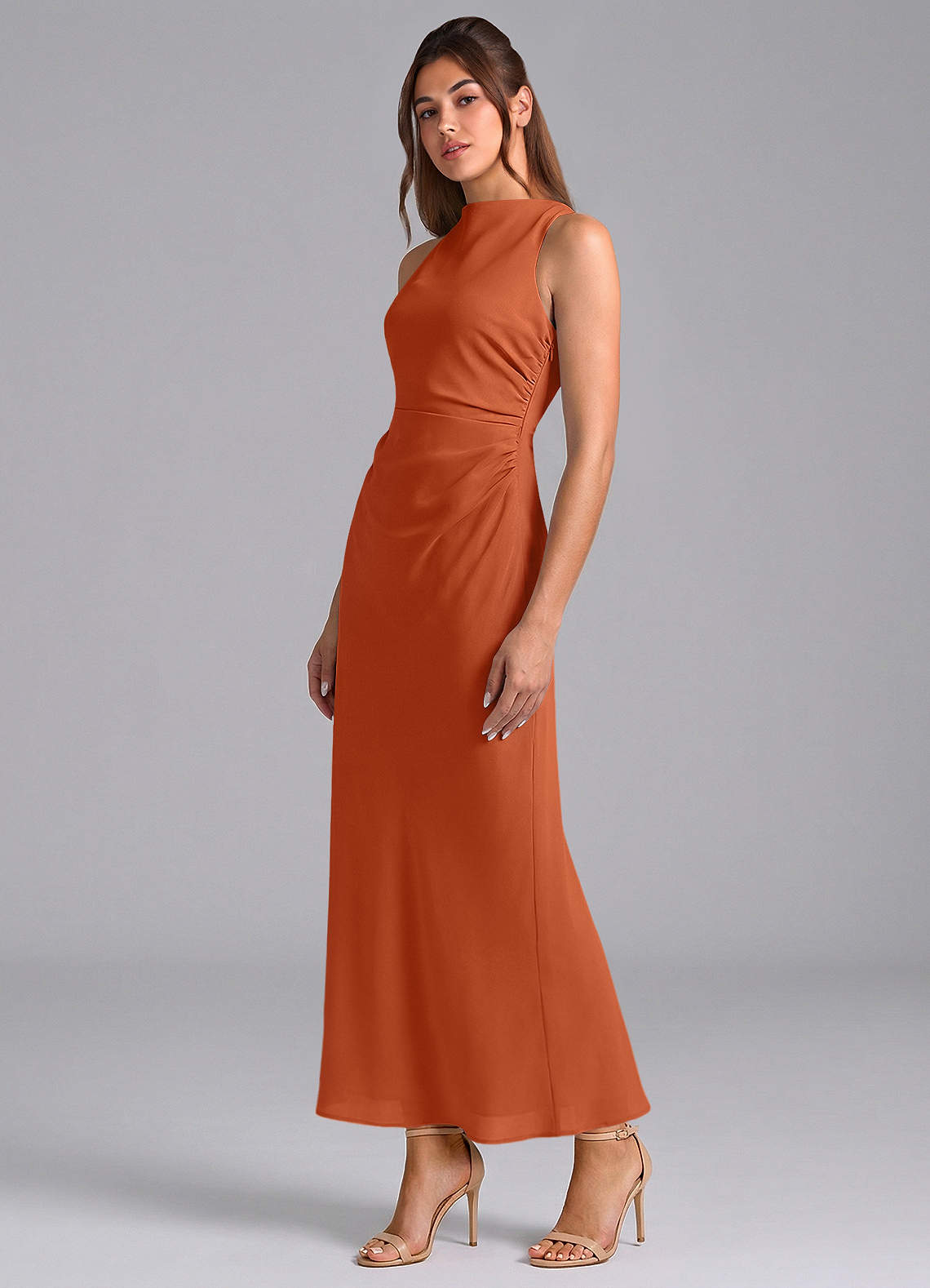 Robe Fourreau en Mousseline de soie Plissée Orange Brûlée