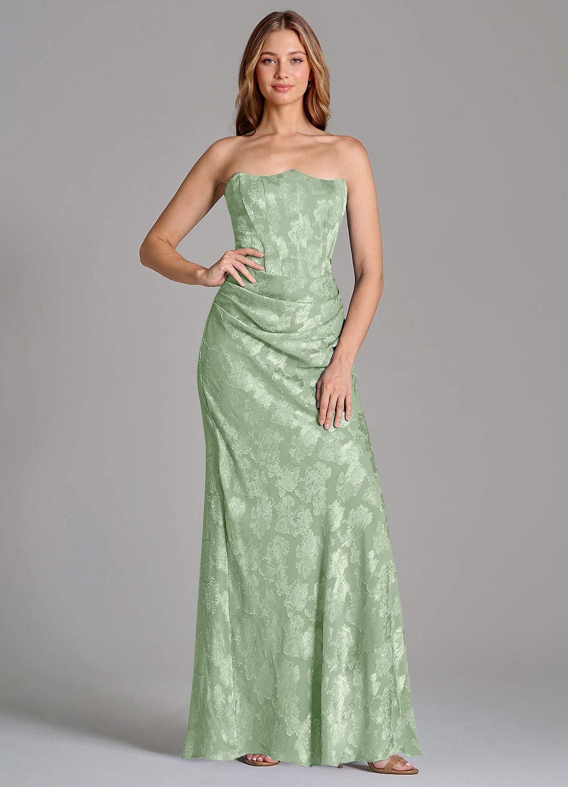Robe Sirène Convertible en Blumen-Burnout Sans bretelles Vert Sauge