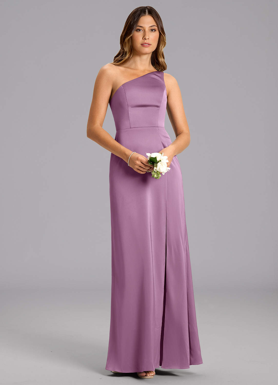 Robe Trapèze en Satin extensible Une épaule Glycine