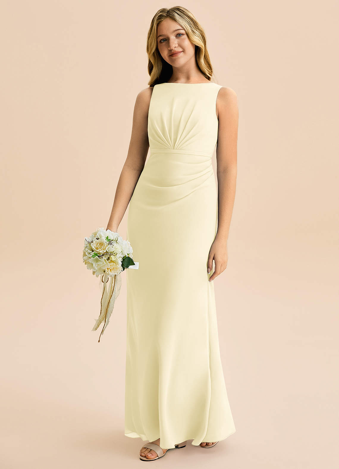 Robe Trapèze en Mousseline de soie Plissée Sorbet Citron