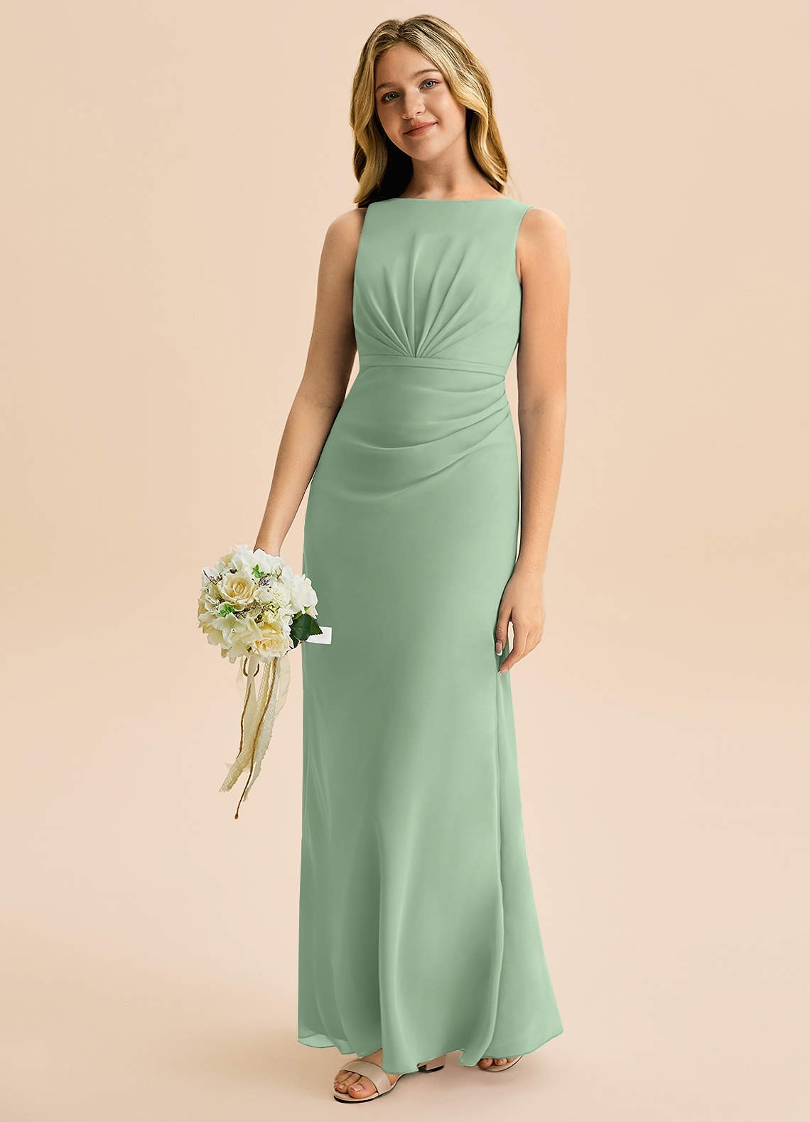Robe Trapèze en Mousseline de soie Plissée Matcha